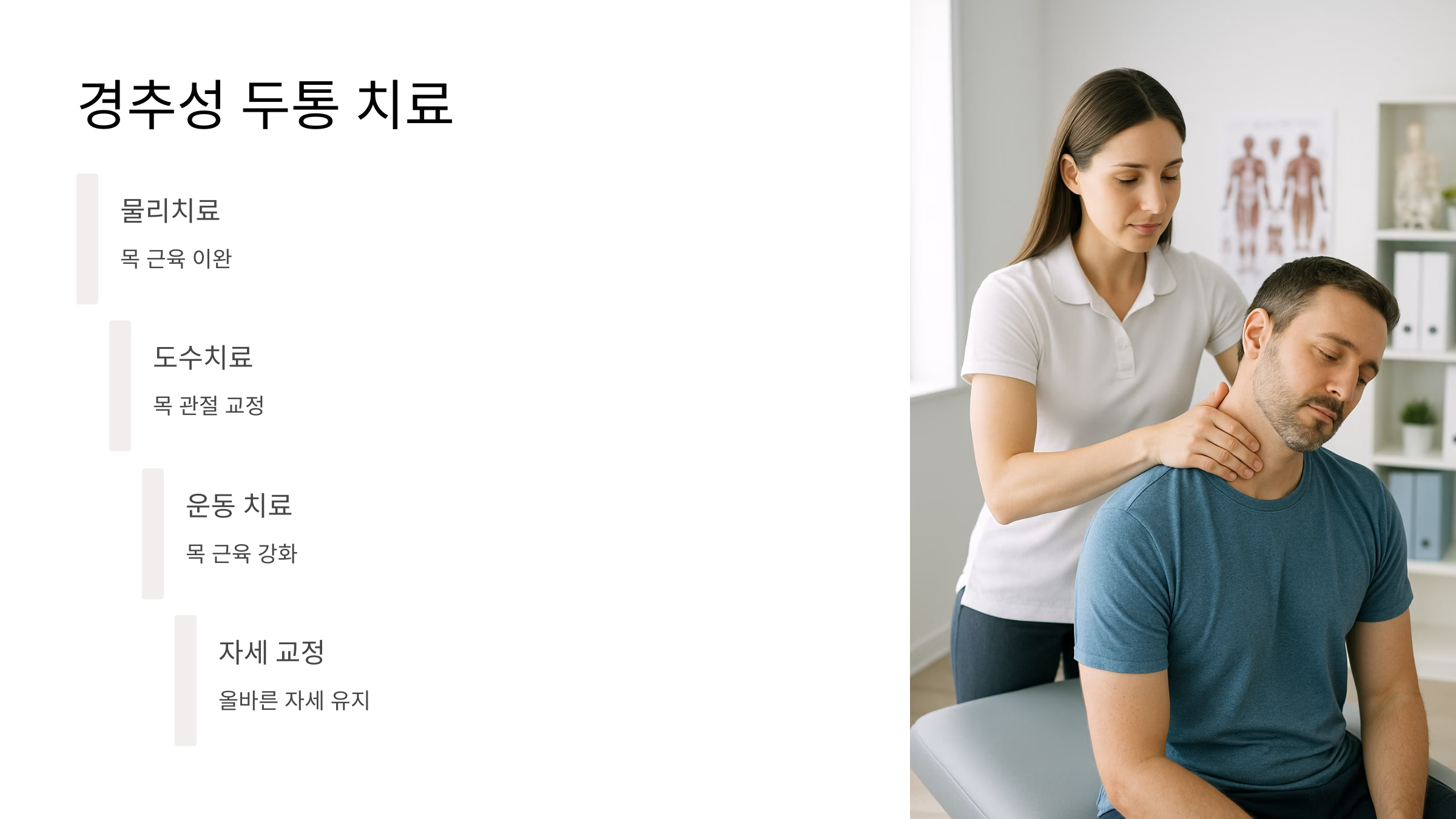 목 상태를 정확히 진단하고 물리치료나 도수치료 같은 방법을 통해 치료받을 수 있죠. 만약 머리를 다친 후 두통이 생겼거나, 갑자기 심한 두통과 함께 팔다리 마비, 언어 장애, 시력 저하 같은 증상이 나타난다면? 망설이지 말고 바로 응급실로 가세요!