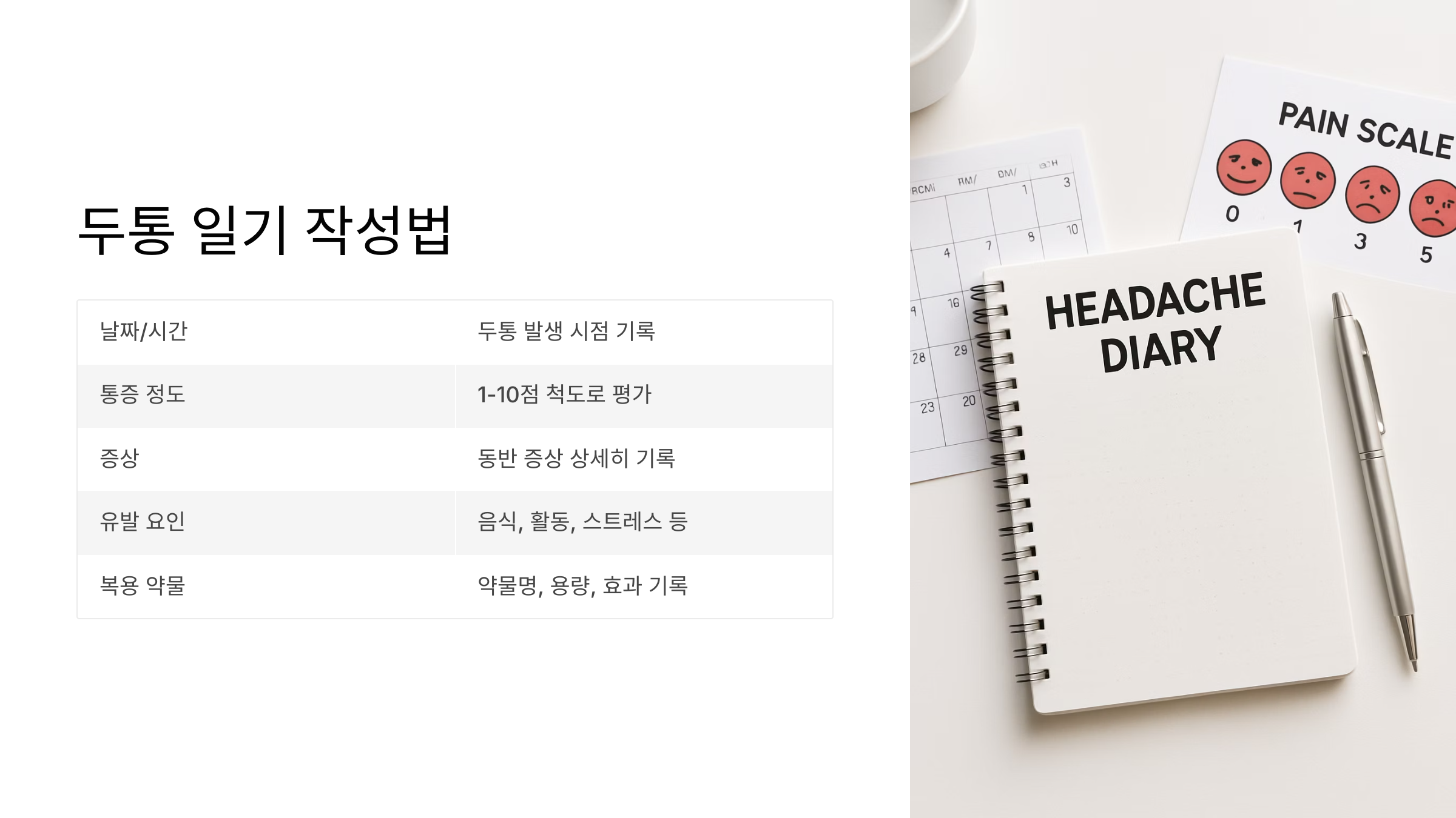 두통 일기를 써보는 것도 좋은 방법이에요. 두통이 언제, 얼마나 심했는지, 어떤 요인이 있었는지 기록하면 병원 진료에 도움이 된답니다. 하지만, 자가 관리로도 괜찮아지지 않으면, 꼭 병원에 가서 전문가의 도움을 받으세요. 자, 이제 두통 지속 시 대처 방법을 알아봤으니, 마지막 단계로 넘어가 볼게요!