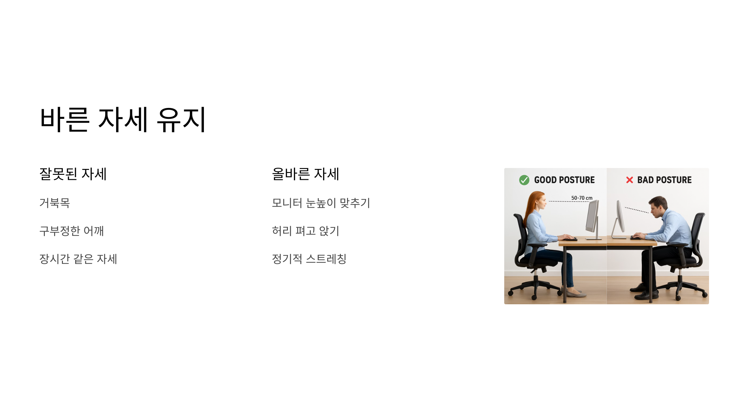 바른 자세를 유지하는 것도 중요하답니다. 장시간 컴퓨터 작업이나 스마트폰 사용 시 자세에 신경 쓰고, 목과 어깨 근육을 풀어주세요. 충분한 수분 섭취도 잊지 말고, 두통을 유발하는 음식이나 환경 요인을 피하는 노력도 해보세요.