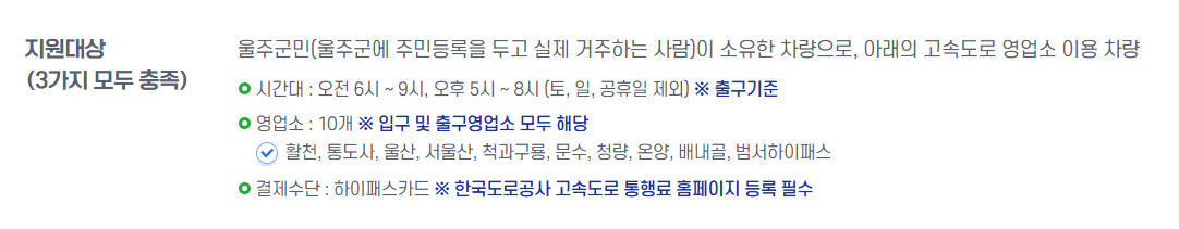 1. 울주군 고속도로 통행료 지원 대상 확인하기