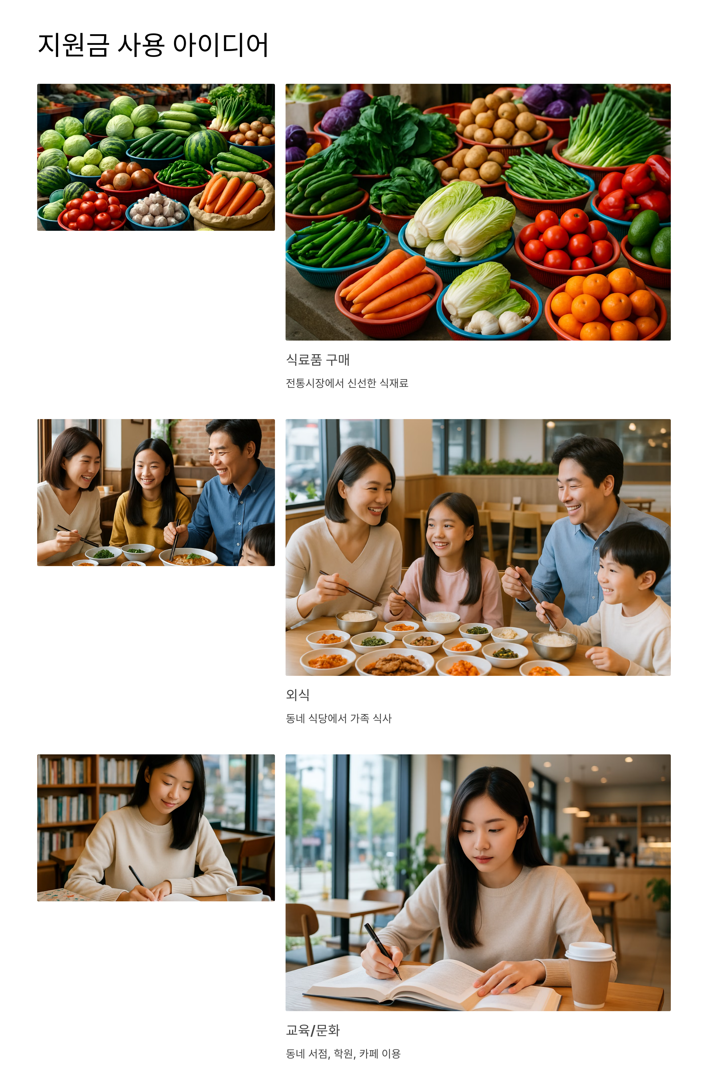 드디어 여러분이 기다리던 순간! 받은 지원금을 어디서 쓸 수 있는지 알려드릴게요! 일단 동네 상권 활성화를 위해 전통시장, 동네 슈퍼, 마트, 미용실, 세탁소 등 생활 밀접 업종에서 사용할 수 있습니다.