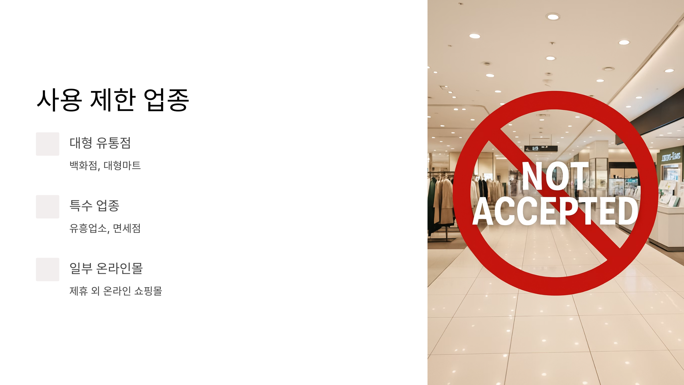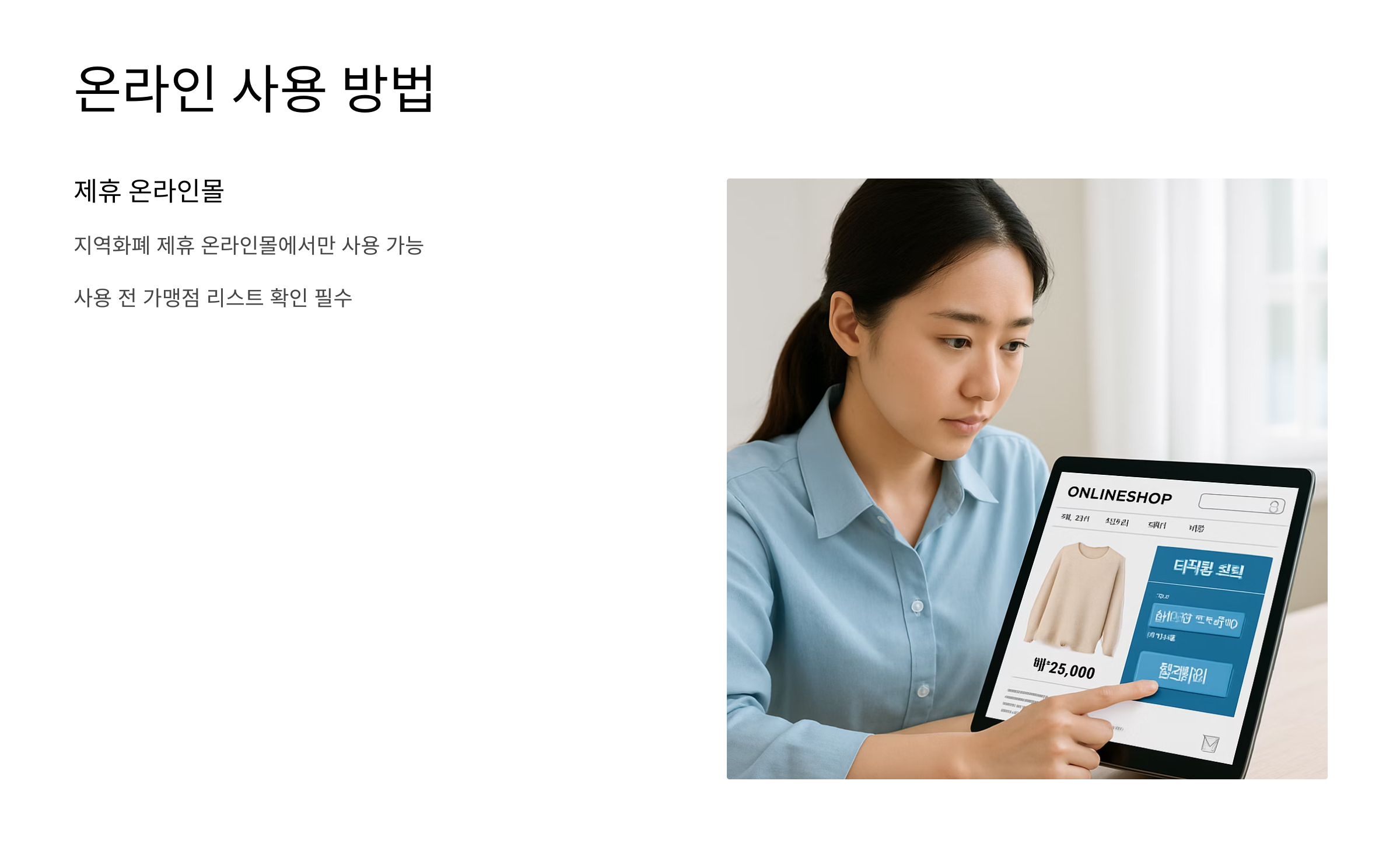 편의점, 식당, 카페, 학원 등도 가능하니 걱정하지 마세요! 하지만 백화점, 대형마트, 유흥업소, 면세점, 그리고 일부 온라인 쇼핑몰은 제외됩니다. 온라인으로 사용하려면 지역화폐 제휴 온라인몰을 이용해야 하니, 사용 전에 가맹점 리스트를 꼭 확인하세요!
