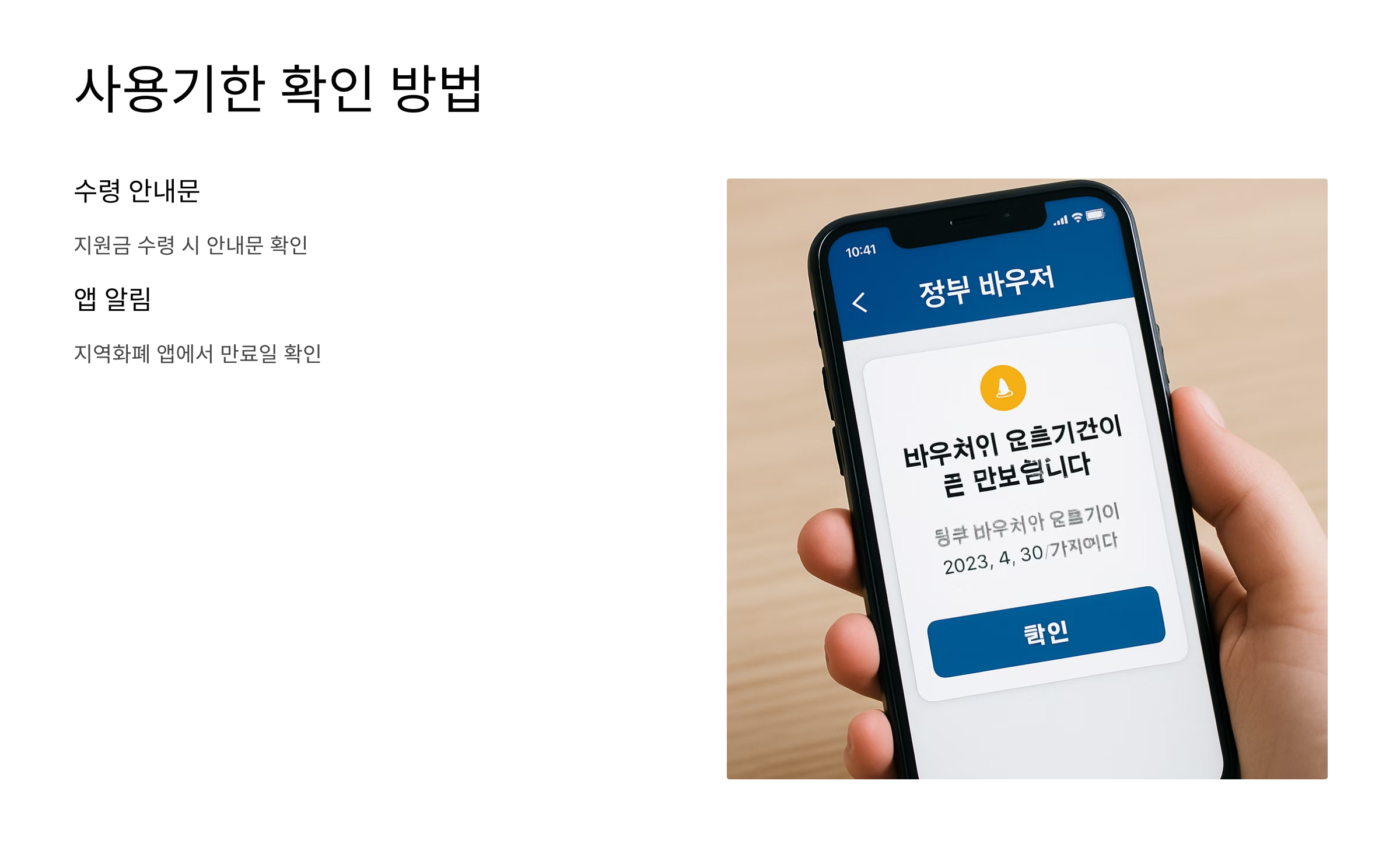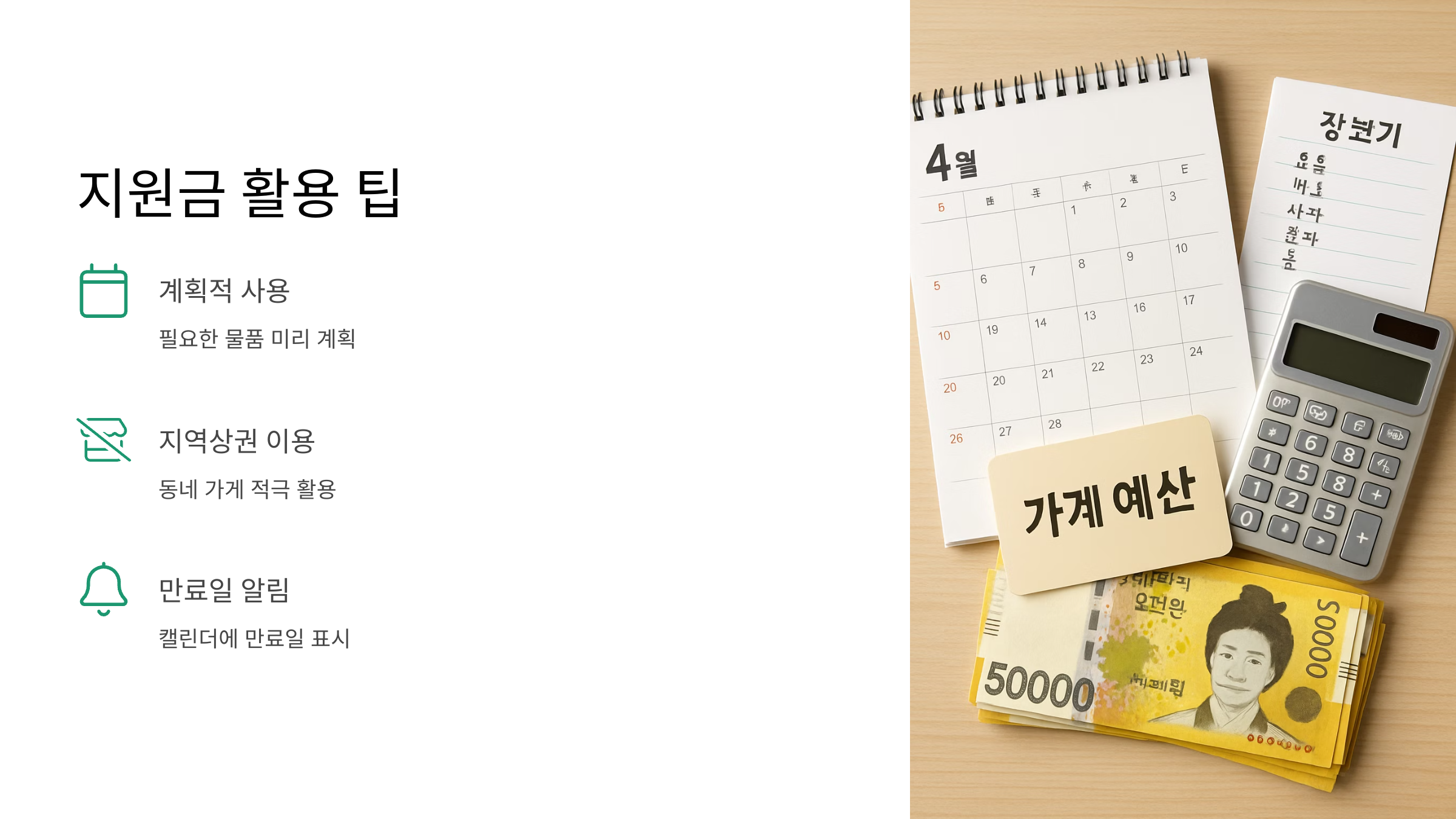 수령 시 안내문이나 앱 알림으로 정확한 기간을 확인할 수 있으니 꼭 확인하시고, 알뜰살뜰하게 사용하세요! 여러분이 받은 지원금이 지역경제 활성화에 도움이 되고, 여러분의 삶에도 행복을 더해주길 바랍니다.