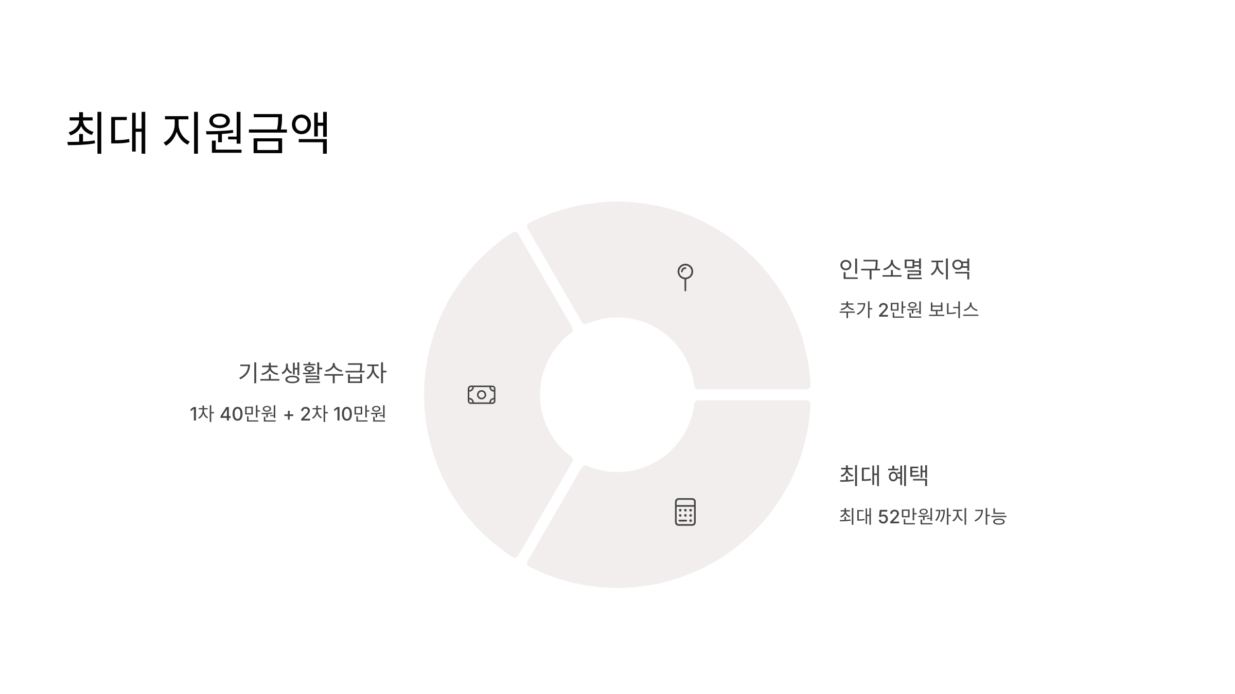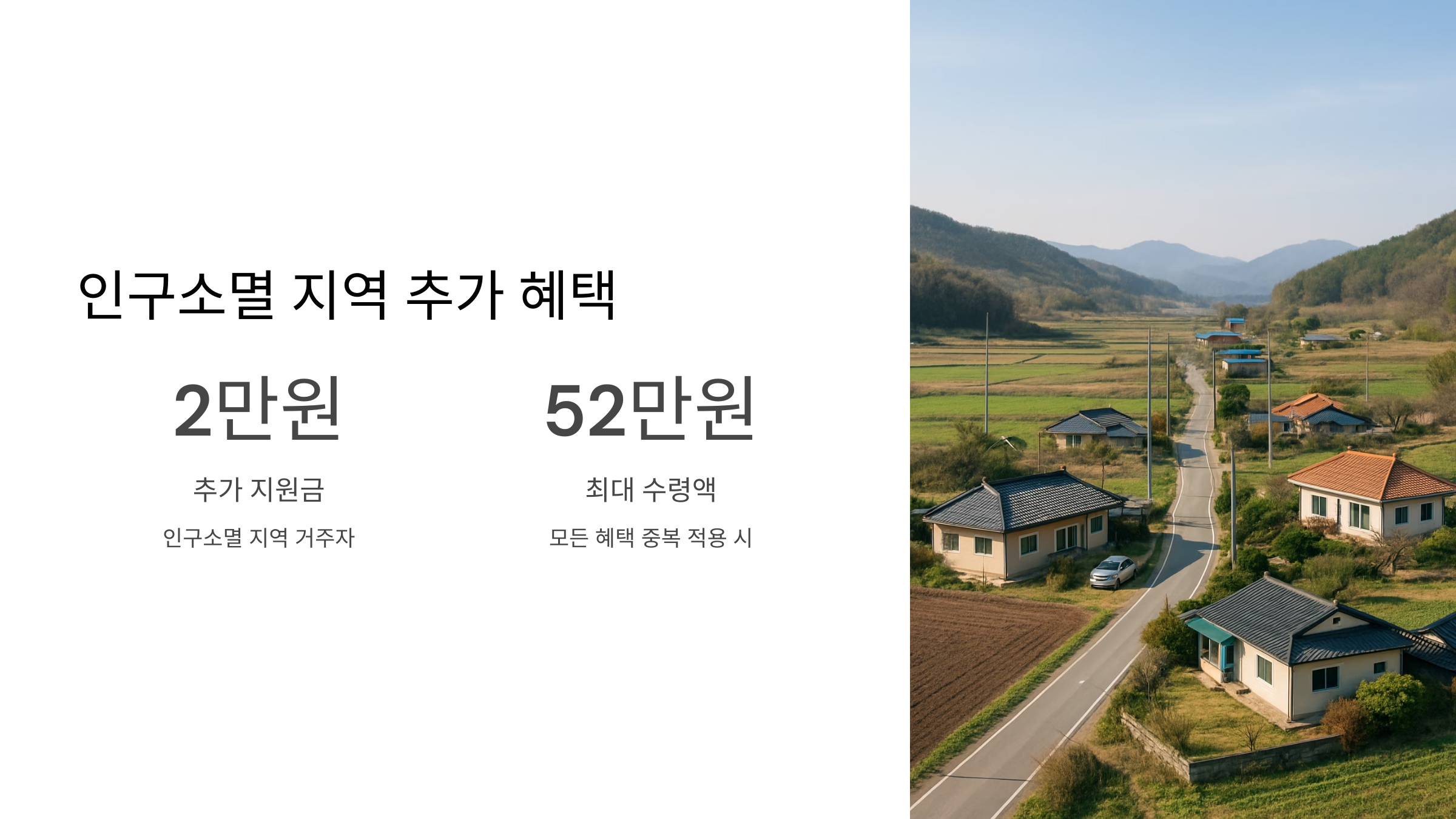 심지어 기초생활수급자라면? 1차에 40만 원, 2차에 10만 원 더해서 무려 50만 원! 정말 대박이죠? 하지만 아직 끝나지 않았습니다! 혹시 인구소멸 지역에 살고 계신가요?