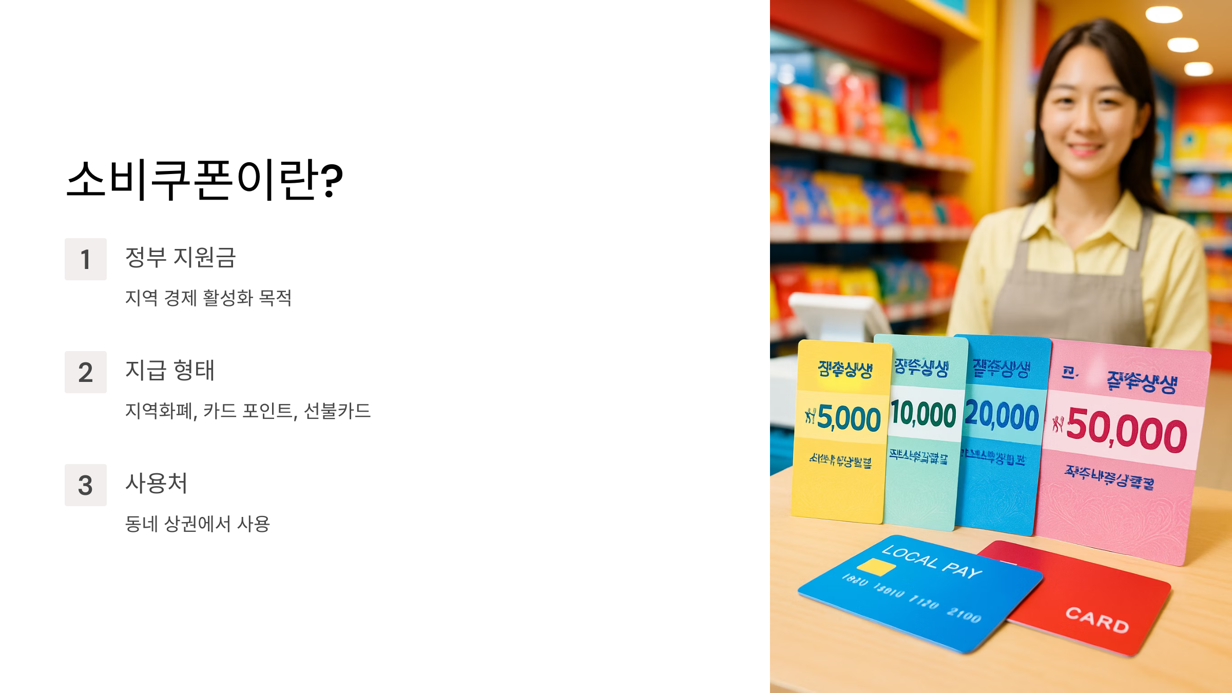 먼저, 민생회복 소비쿠폰이 뭔지 간단히 알려드릴게요. 정부가 지역 경제 살리려고 쏘는 긴급 지원금이라고 생각하시면 돼요. 지역화폐나 카드 포인트, 선불카드 형태로 받을 수 있고, 동네 상권에서 돈을 쓰라고 주는 거예요.