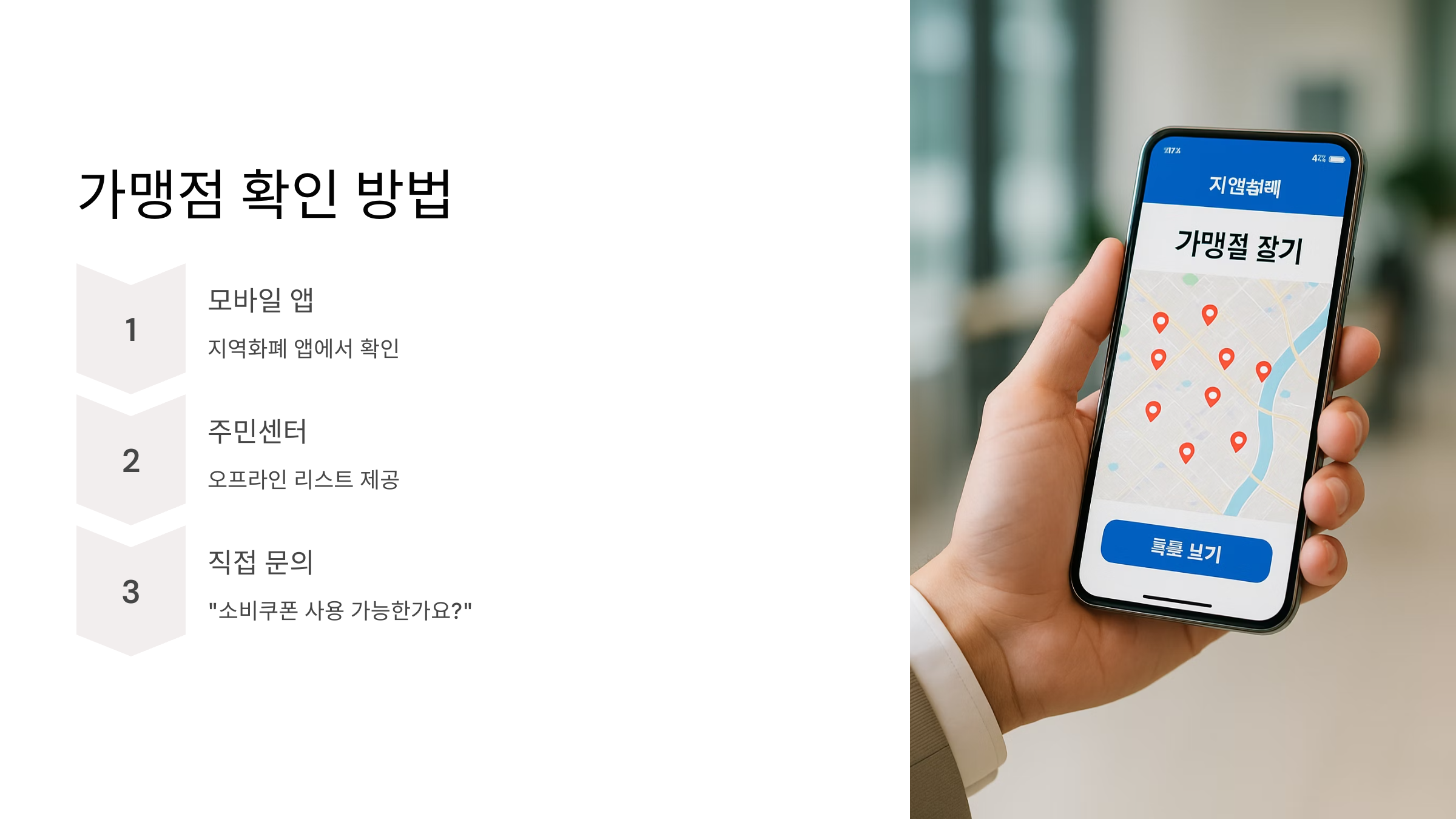 모바일 앱이나 주민센터에서 확인 가능하답니다. 그리고 결제 전에 "민생회복 소비쿠폰 사용 가능한가요?"라고 꼭 물어보는 센스! 잊지 마세요!
