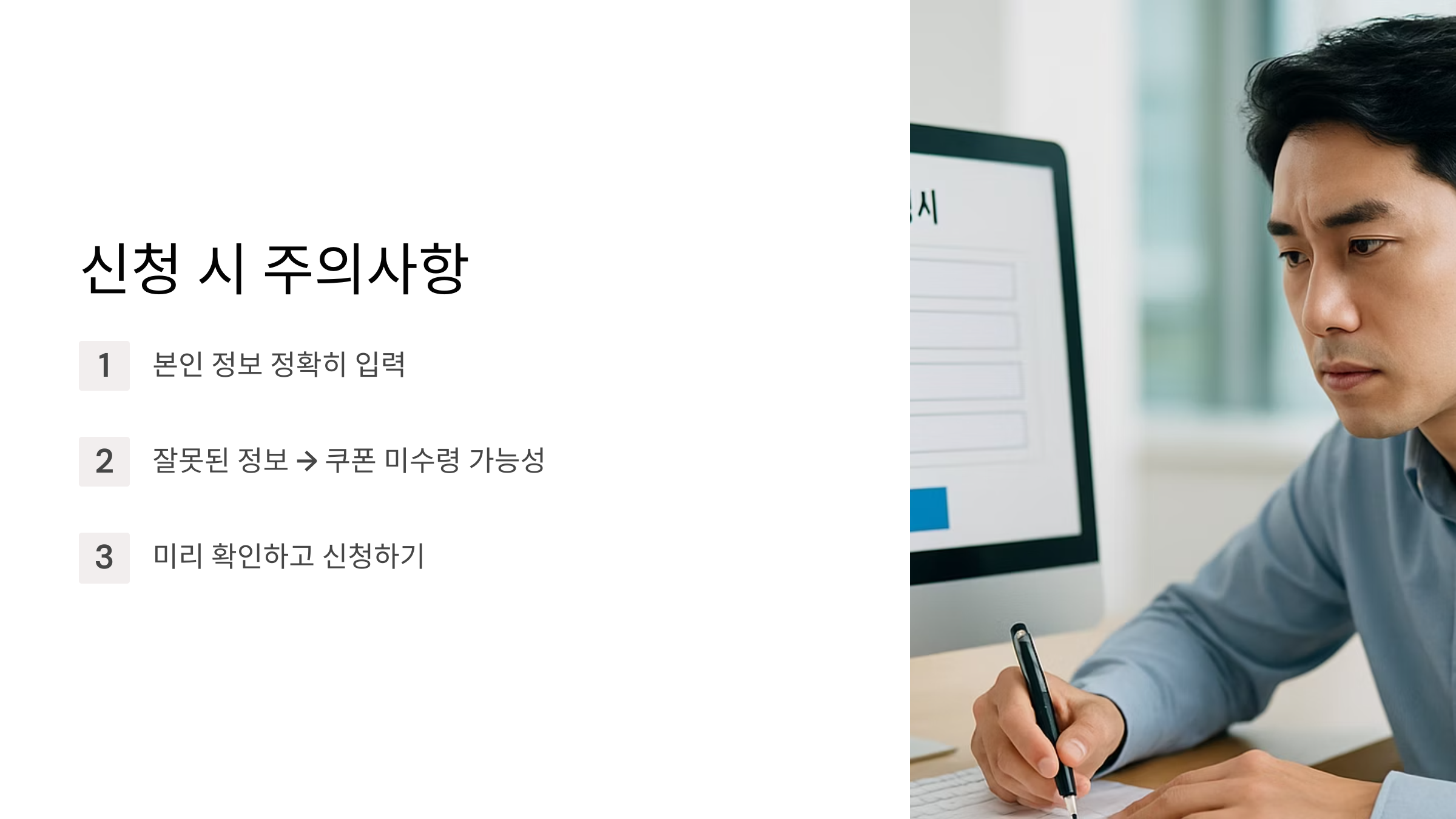 좋은 소식만 있는 건 아니죠. 쿠폰 사용에는 기한이 있어요. 1차와 2차 지급분 모두 2025년 11월 30일까지 사용해야 해요. 기한이 지나면 자동으로 소멸되고 환불도 안 된다는 점 꼭 기억하세요! 신청 시, 본인 정보를 정확하게 입력하는 것도 잊지 마세요.