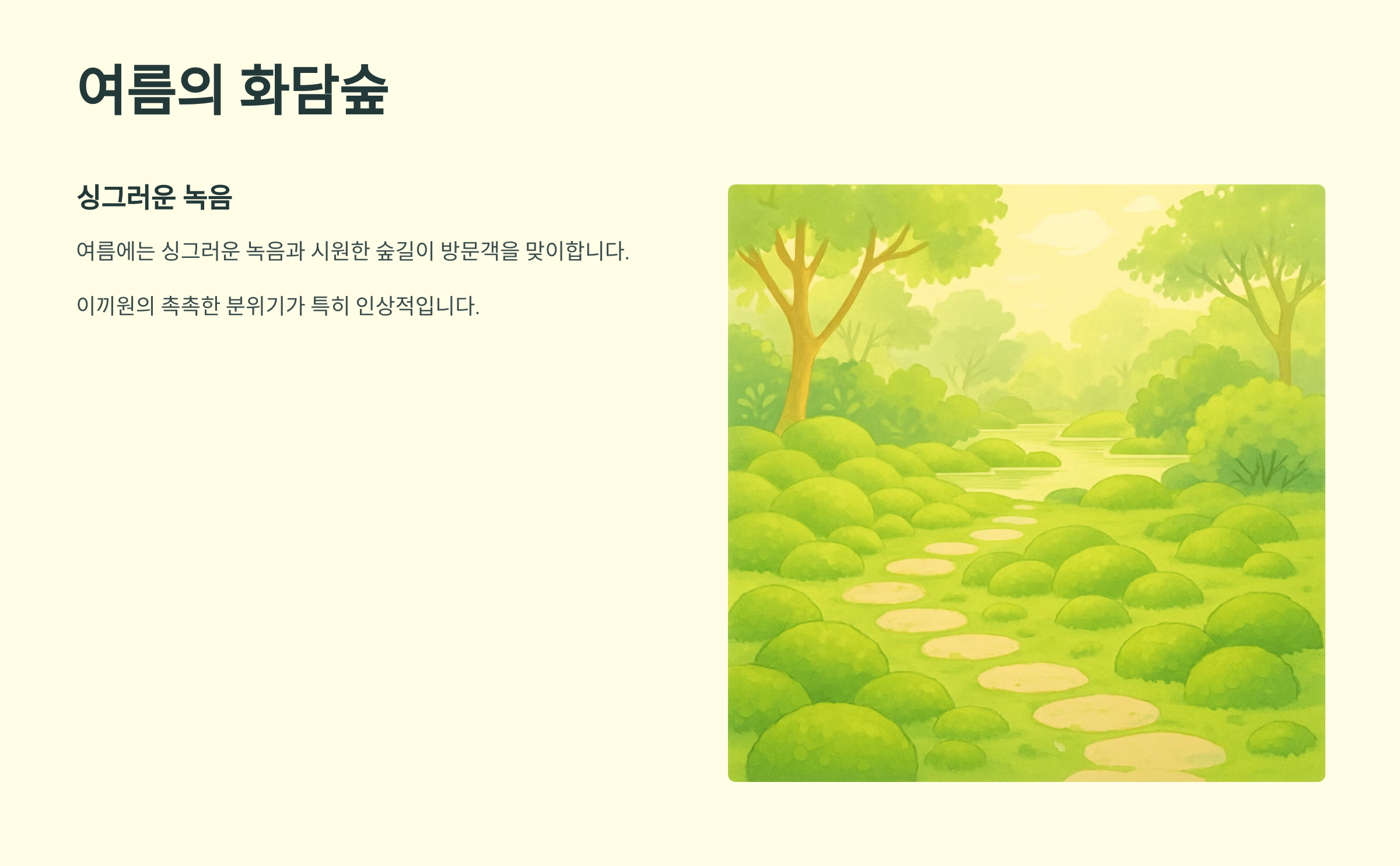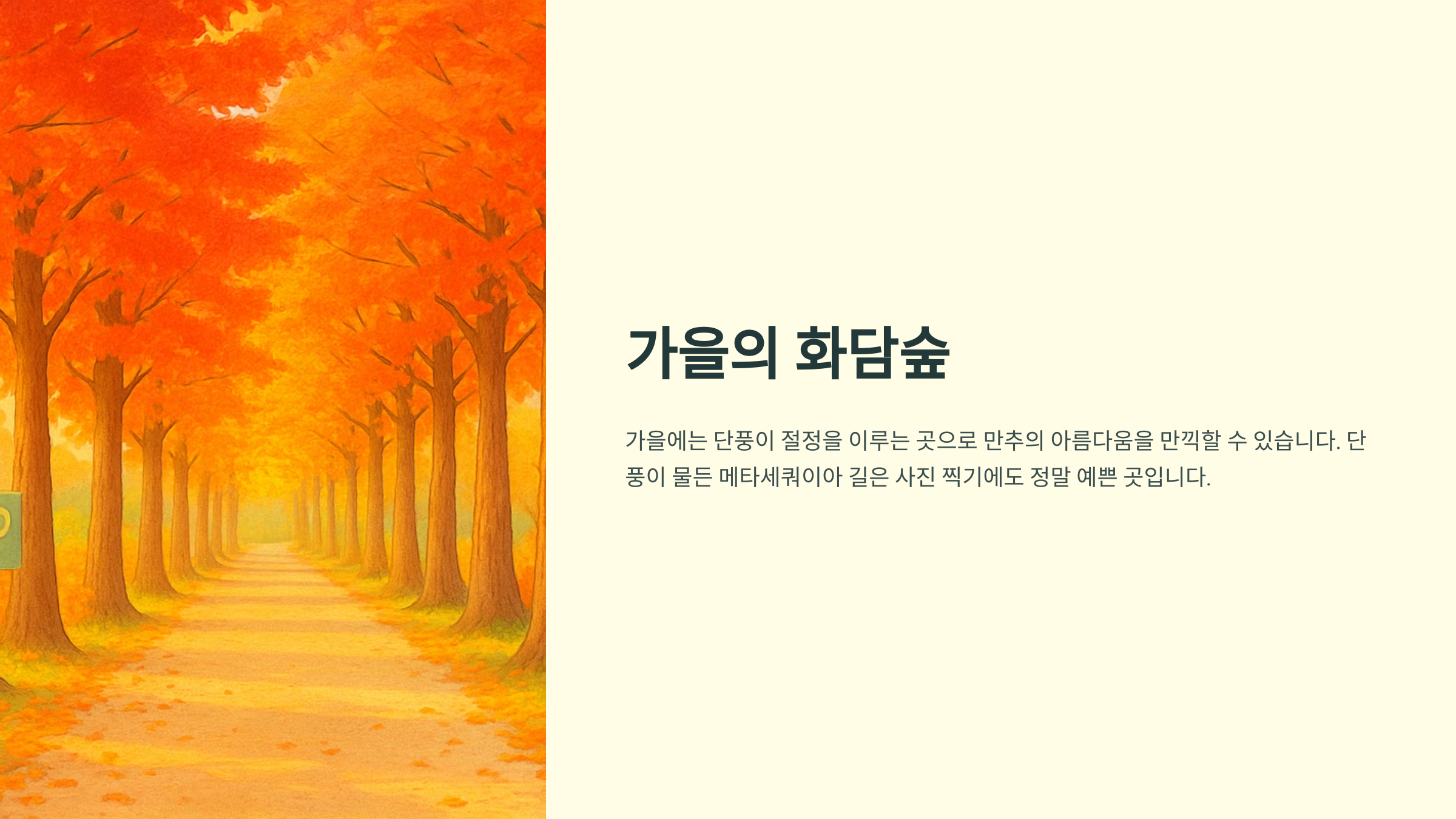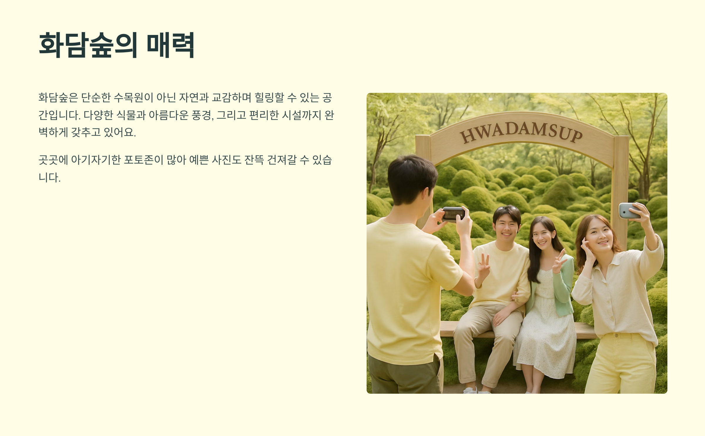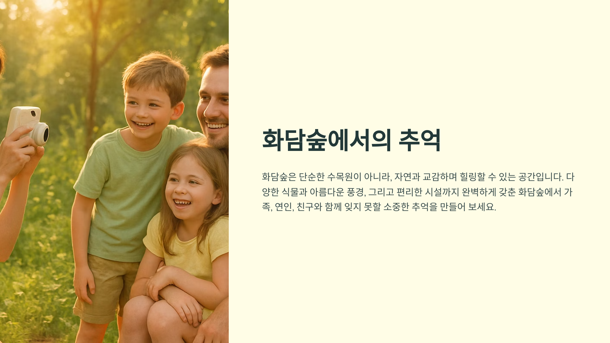 안녕하세요! 오늘은 서울 근교에서 아름다운 자연을 만끽할 수 있는 화담숲에 대해 속속들이 파헤쳐 보는 시간을 가져볼까 합니다. 푸르른 녹음, 화려한 단풍, 겨울의 정취까지 사계절의 매력을 담고 있는 화담숲은 가족, 연인, 친구와 함께 편안한 휴식을 취할 수 있는 최고의 장소랍니다. 화담숲에서 잊지 못할 추억을 만들어 보세요!