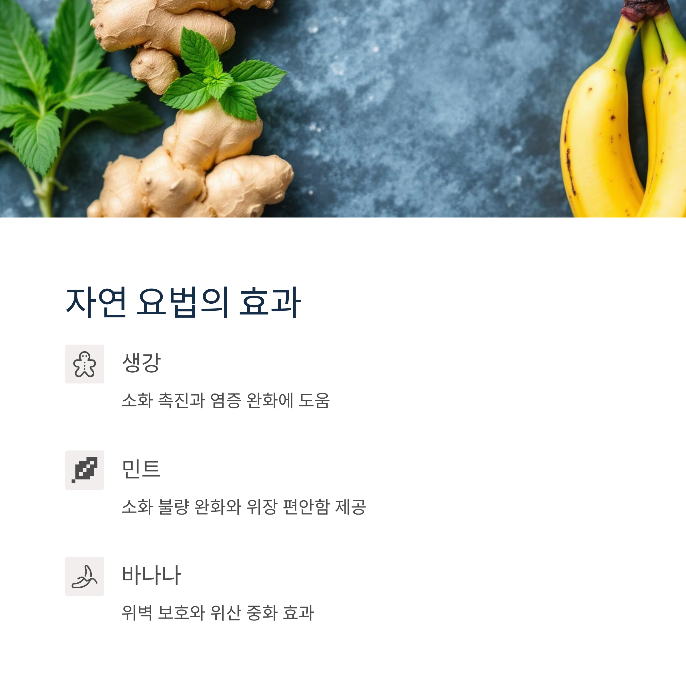 속쓰림과 복통을 완화하는 데 도움이 되는 몇 가지 자연 요법들을 알려드릴게요. 생강은 소화를 촉진하고 염증을 완화하는 데 도움이 되는 것으로 알려져 있어요. 생강차를 마시거나, 생강을 요리에 활용해보세요.