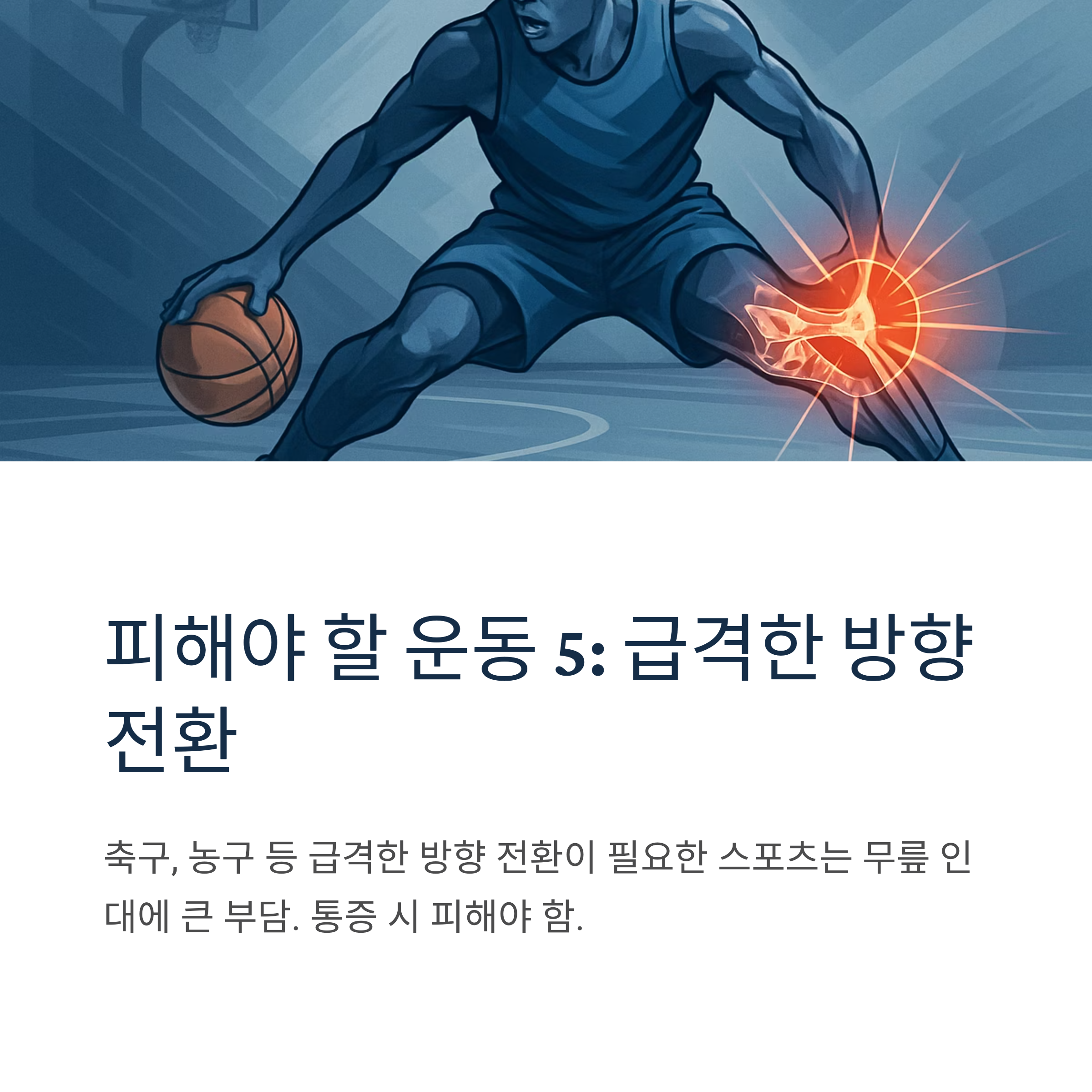 무릎이 아플 때 줄넘기나 점프 스쿼트처럼 점프 동작이 포함된 운동도 무릎에 충격을 주어 통증을 악화시킬 수 있어요. 마지막으로 축구나 농구처럼 급격한 방향 전환이 필요한 운동은 무릎 인대에 부담을 줄 수 있으니 주의해야 해요. 이런 운동들은 무릎 건강에 적신호를 보낼 수 있으니, 무릎이 아플 때는 잠시 쉬는 것이 현명한 선택일 거예요.