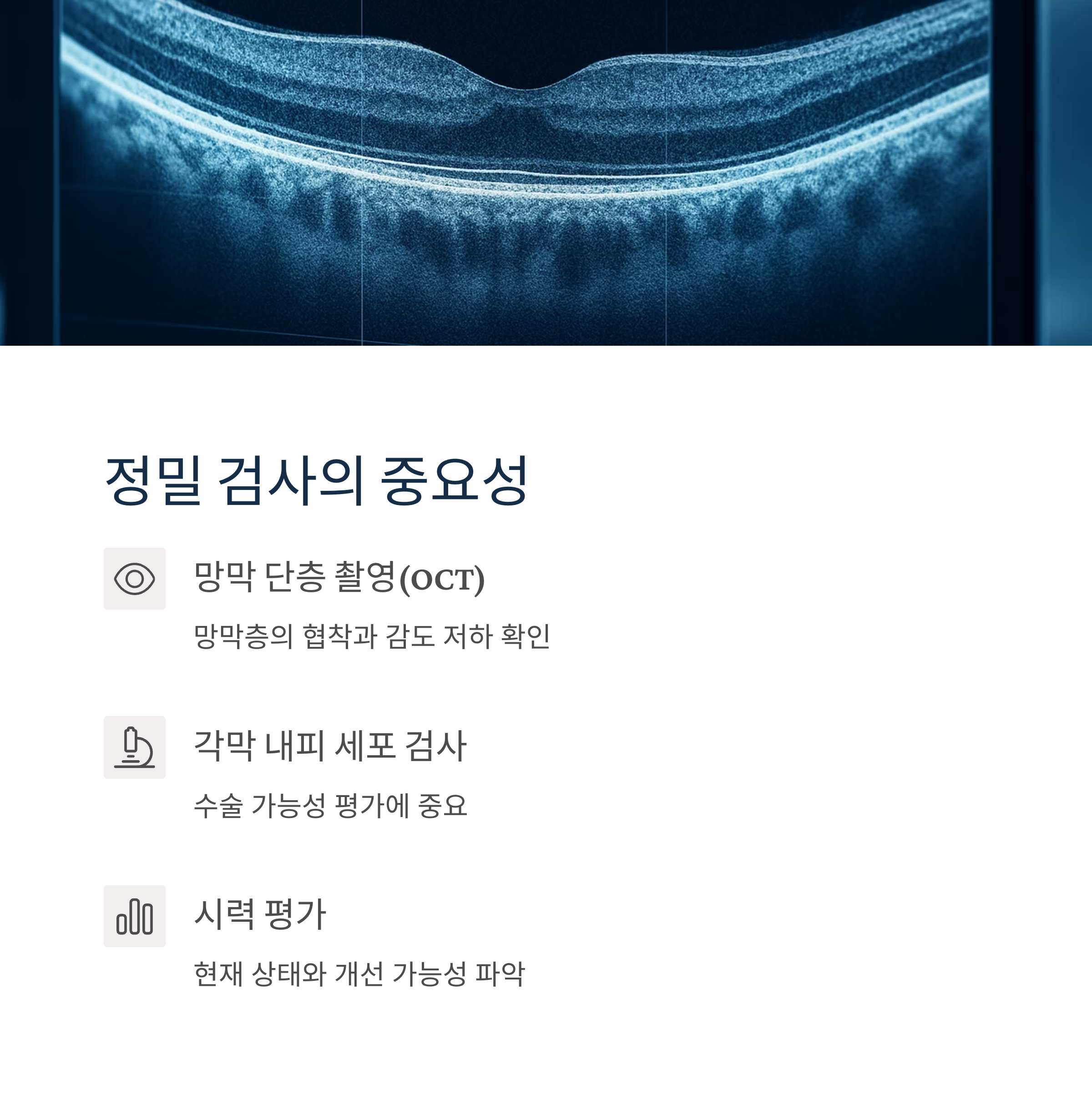 수술 후에도 꾸준한 관리가 중요합니다. 망막 질환은 장기적인 관리가 필요하며, 정기적인 검진을 통해 눈 상태를 꼼꼼하게 체크하는 것이 중요합니다. 저희는 환자분의 눈 건강을 위해 최선을 다할 것을 약속드립니다. 더 궁금한 점이 있다면 언제든지 문의해주세요.