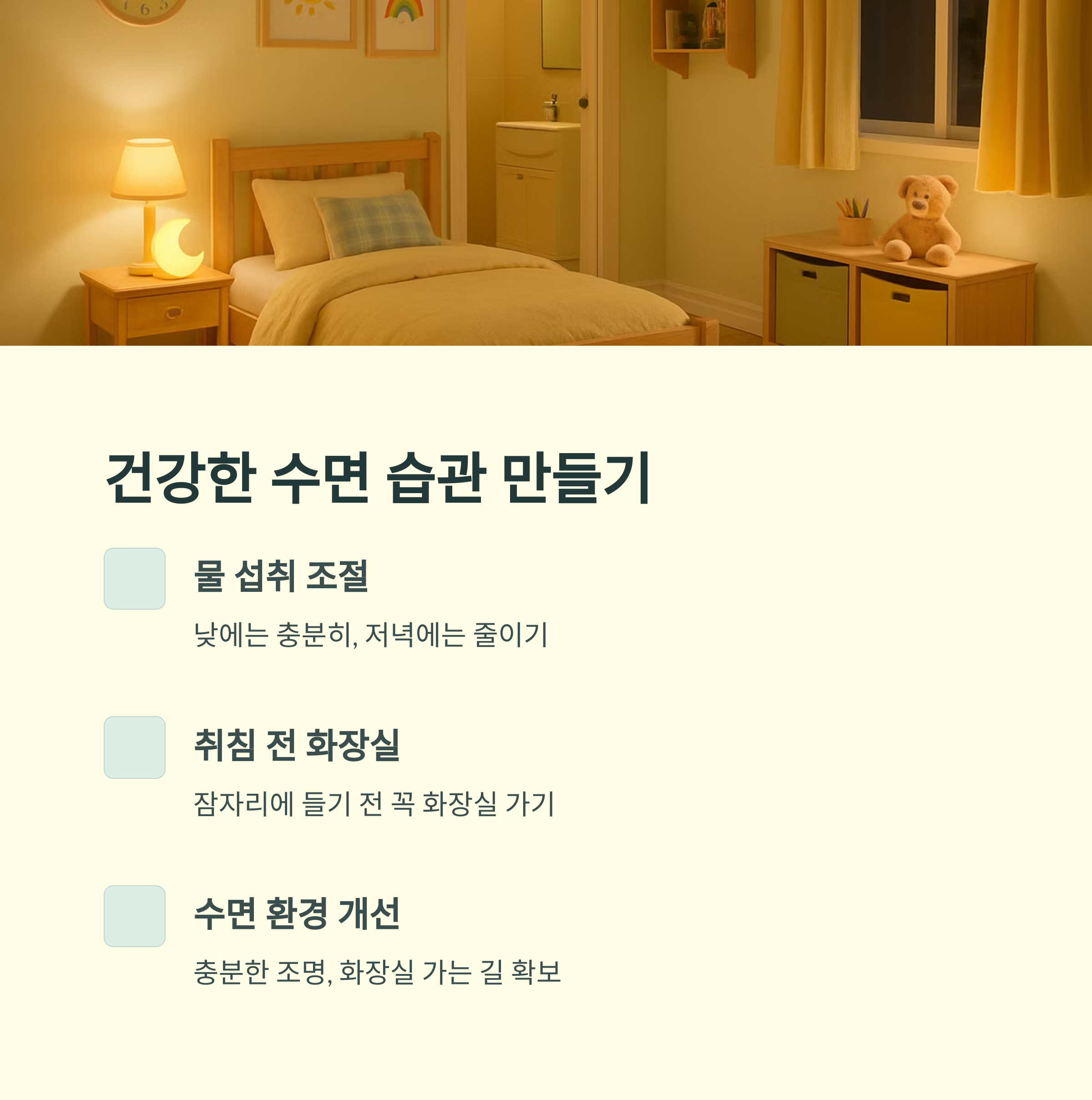 4. 야뇨증 예방 및 관리: 건강한 수면 습관 만들기